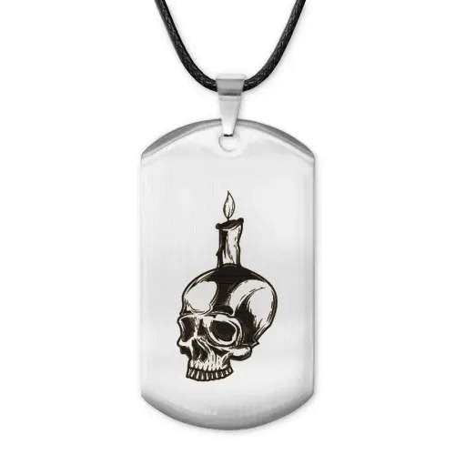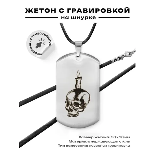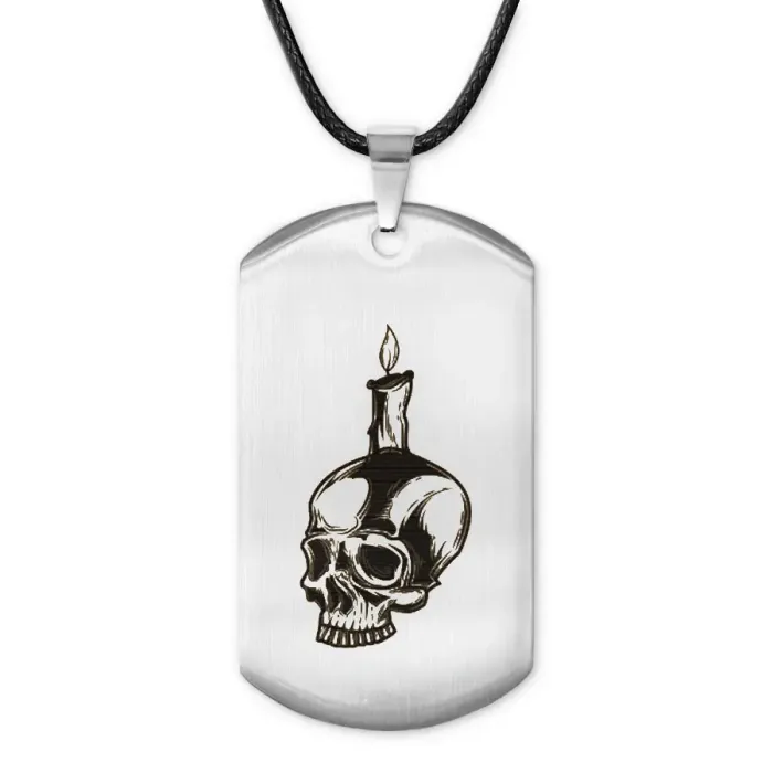 Жетон на шнурке из нержавеющей стали с лазерной гравировкой в виде черепа со свечой.