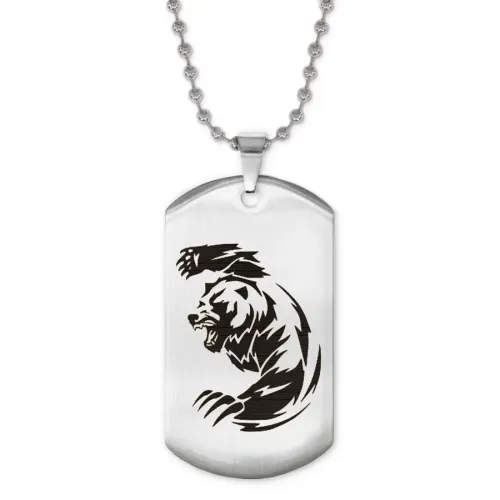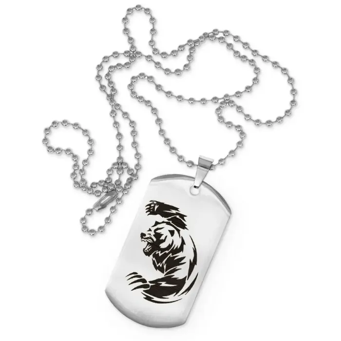 Сувенирный жетон на цепочке с изображением медведя. Изготовлен из нержавеющей стали с зеркальной полировкой.