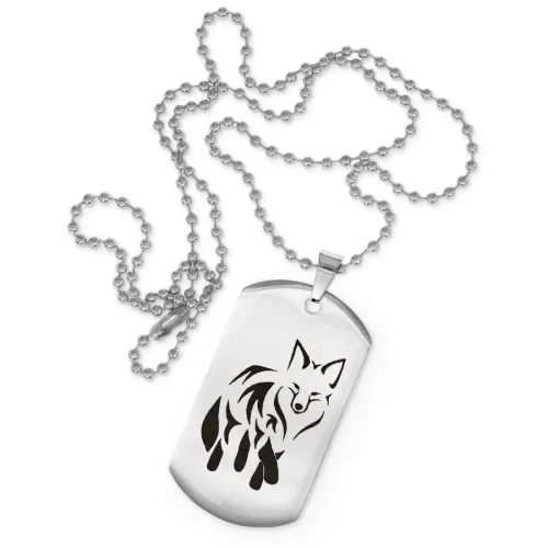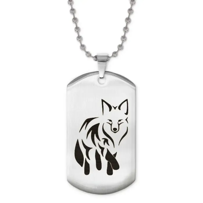 Сувенирный жетон на цепочке с изображением лисы. Изготовлен из нержавеющей стали с зеркальной полировкой и лазерной гравировкой.
