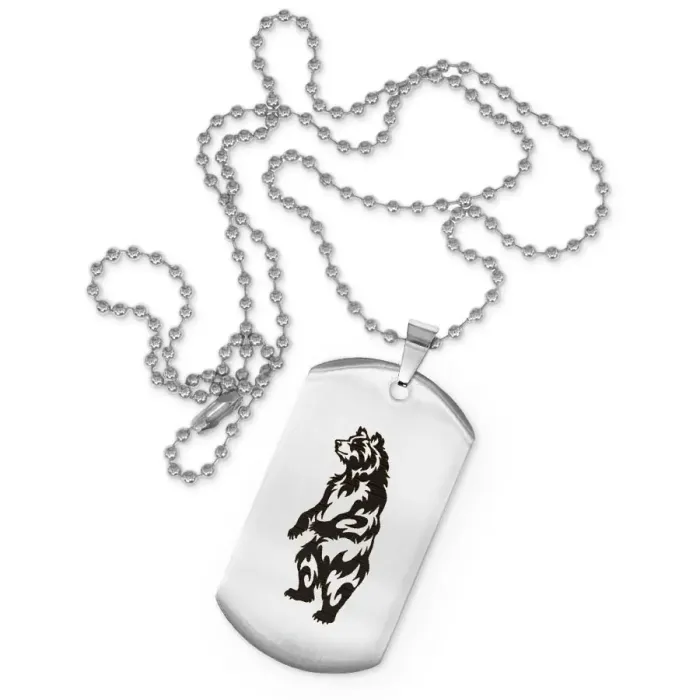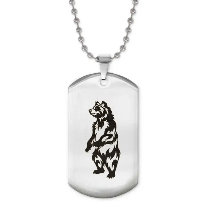 Жетон на цепочке с изображением медведя. Изготовлен из нержавеющей стали с полировкой.