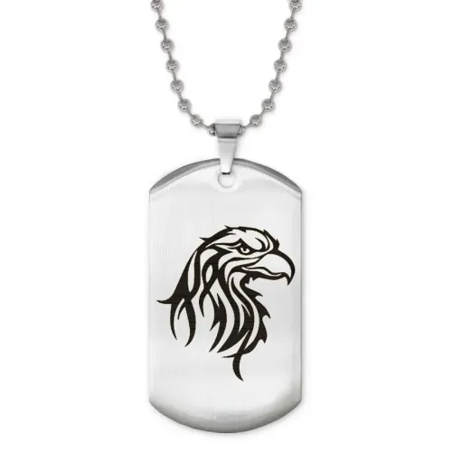 Жетон на цепочке из нержавеющей стали с лазерной гравировкой изображения орла.