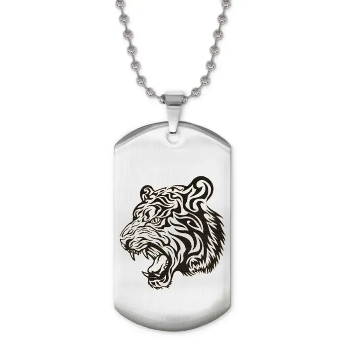 Сувенирный жетон на цепочке из нержавеющей стали с лазерной гравировкой изображения.