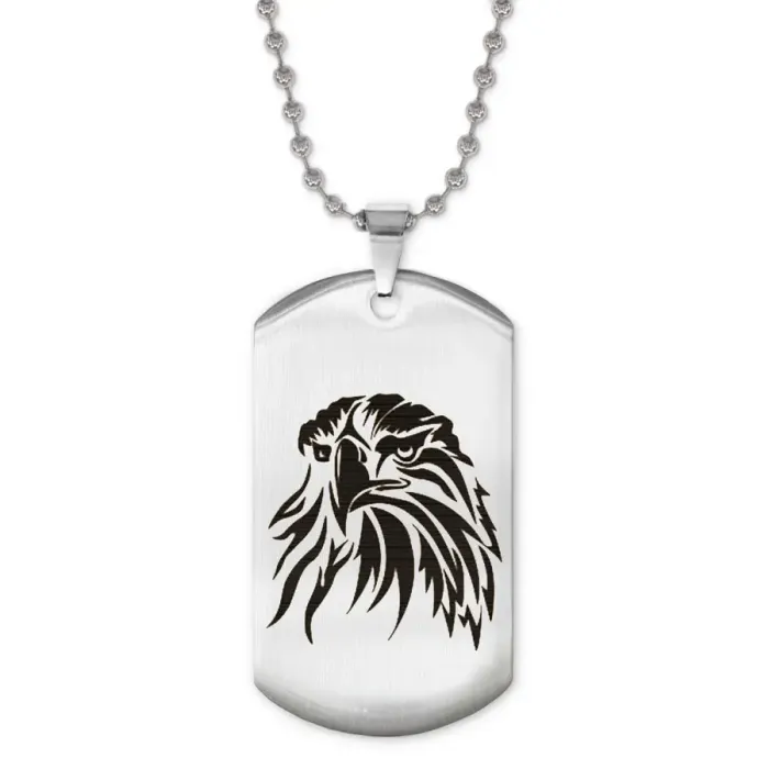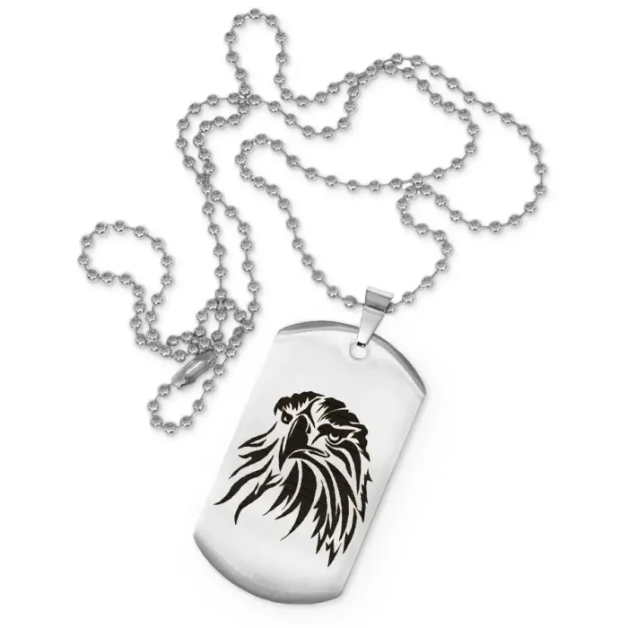 Жетон на цепочке из нержавеющей стали с лазерной гравировкой изображения орла.