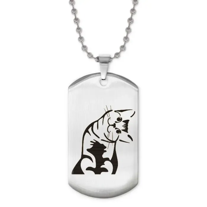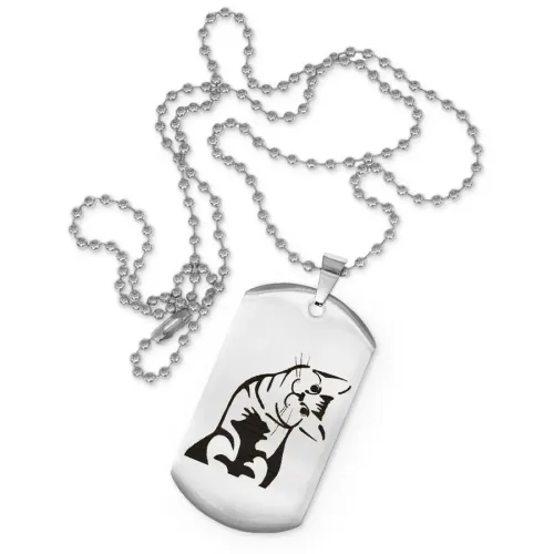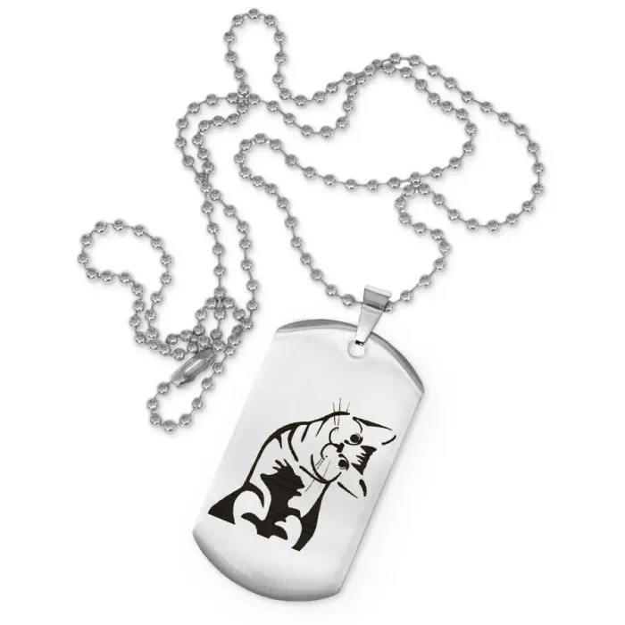 Сувенирный жетон на цепочке с изображением кошки. Изготовлен из нержавеющей стали с зеркальной полировкой.