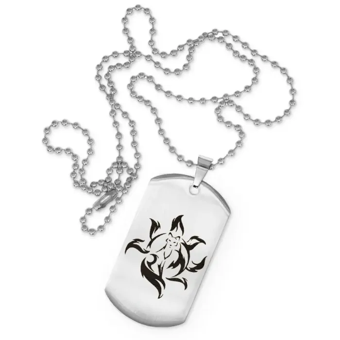 Размеры и комплектация: Размер жетона 50x28 мм. Длина цепочки 60 см. Упаковка — прозрачный пакет.