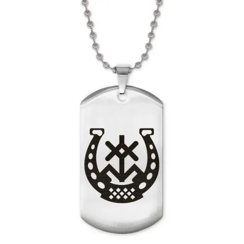 Размеры и комплектация: Размер жетона: 50x28 мм. Длина цепочки: 60 см (регулируемая). Упаковка: прозрачный пакет.