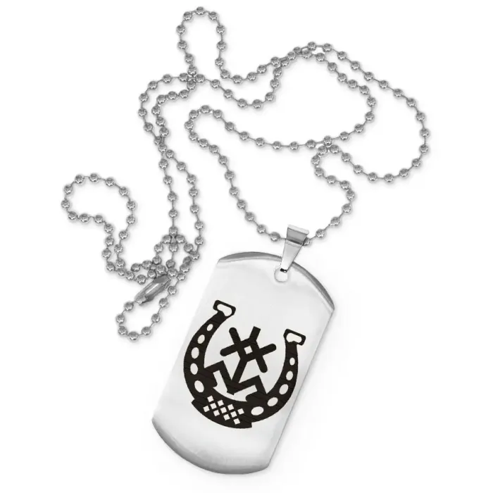 Сувенирный жетон на цепочке в форме подковы. Изготовлен из полированной нержавеющей стали с лазерной гравировкой.