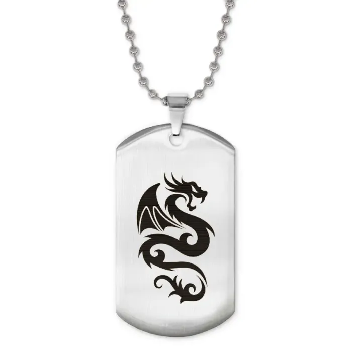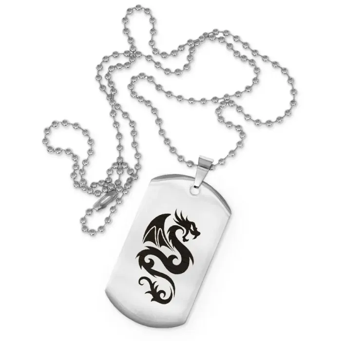 Сувенирный жетон на цепочке с изображением дракона. Изготовлен из нержавеющей стали с зеркальной полировкой.