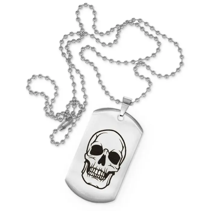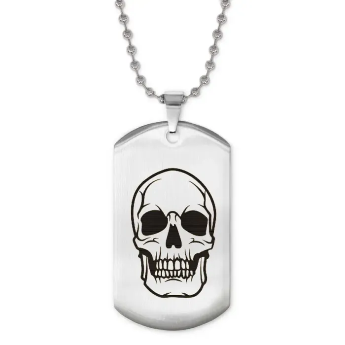 Жетон на цепочке с лазерной гравировкой черепа из нержавеющей стали.