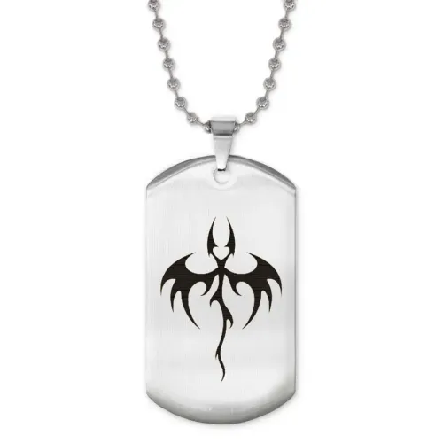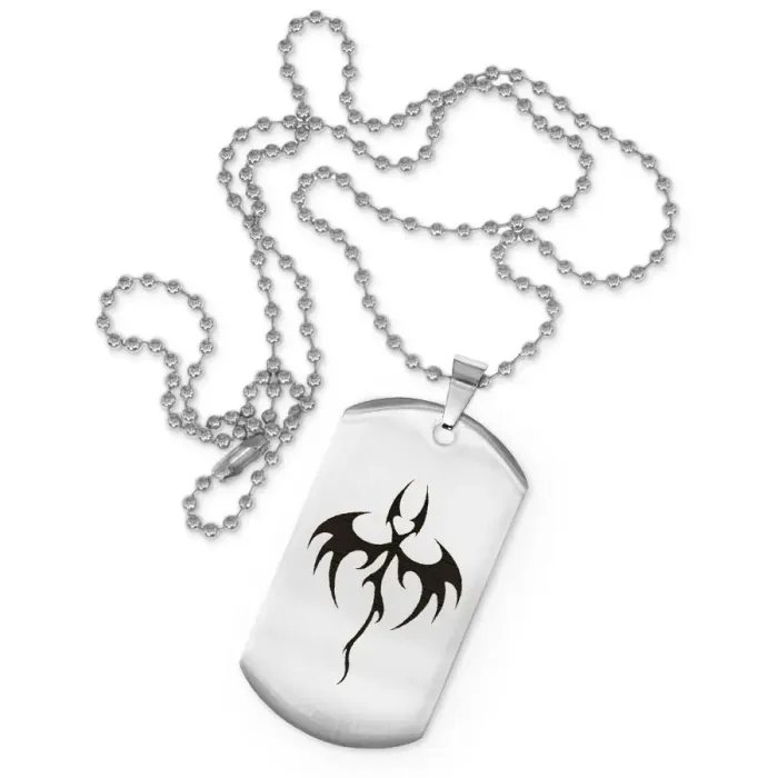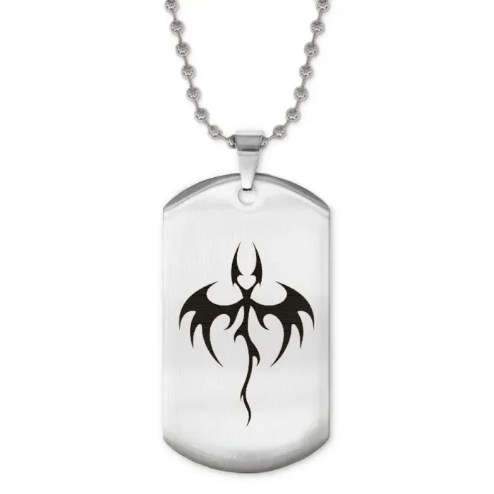 Сувенирный жетон на цепочке из нержавеющей стали с лазерной гравировкой изображения дракона.