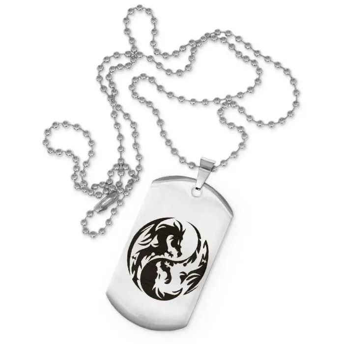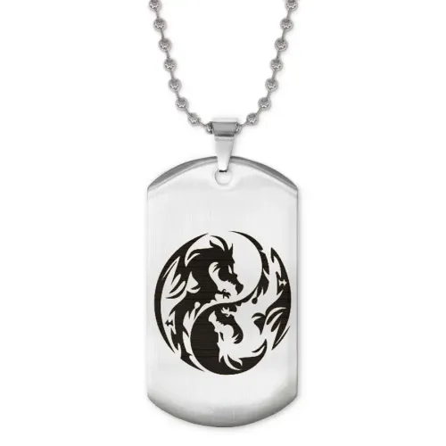 Жетон на цепочке с символикой драконов Инь-Ян. Изготовлен из нержавеющей стали с лазерной гравировкой.