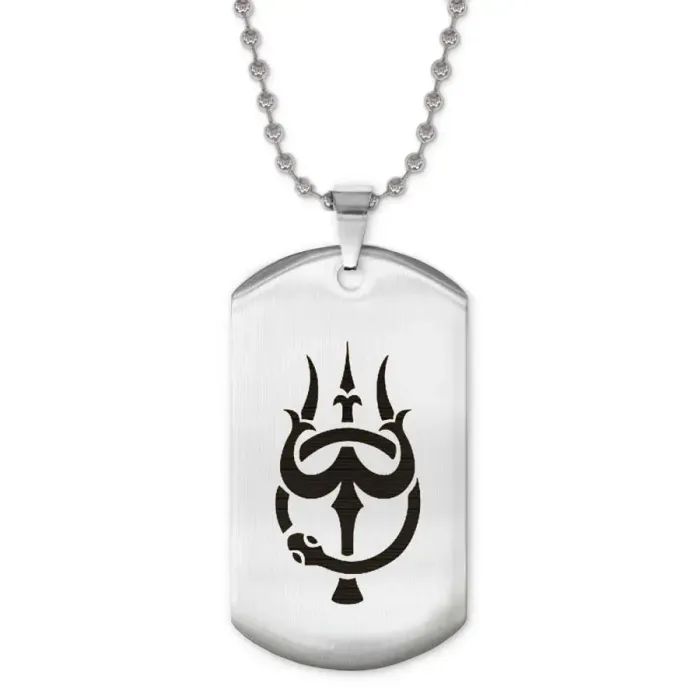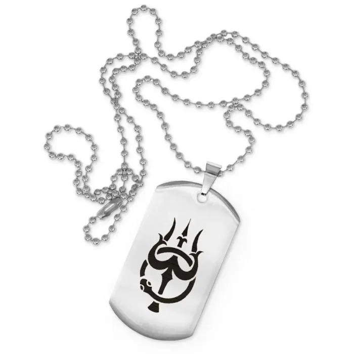 Сувенирный жетон на цепочке из нержавеющей стали с лазерной гравировкой символов Тришула и Уроборос.