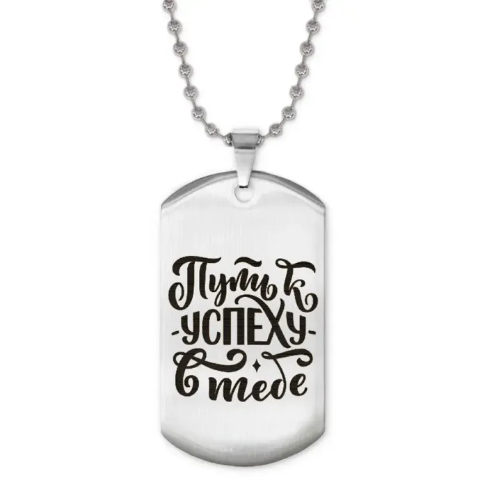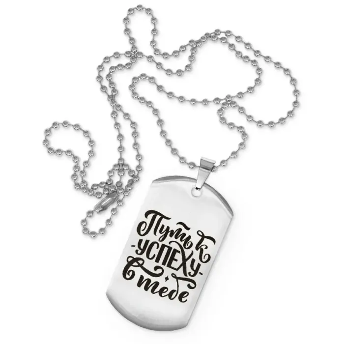 Сувенирный жетон на цепочке из нержавеющей стали с лазерной гравировкой.