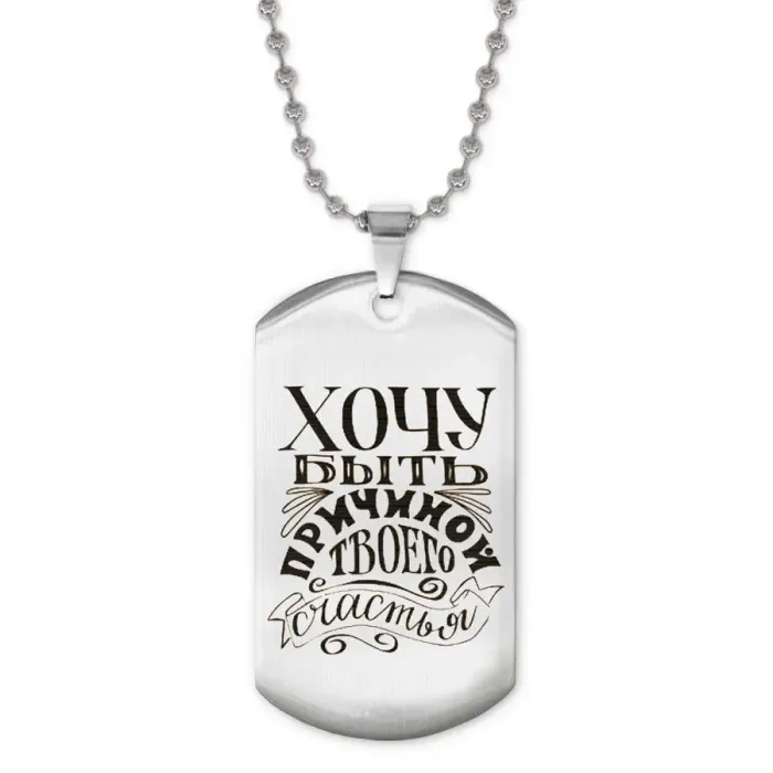Жетон на цепочке из нержавеющей стали с лазерной гравировкой.