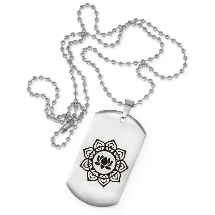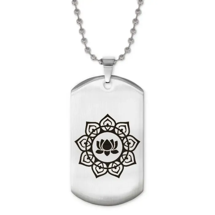 Сувенирный жетон на цепочке с изображением лотоса. Изготовлен из нержавеющей стали.
