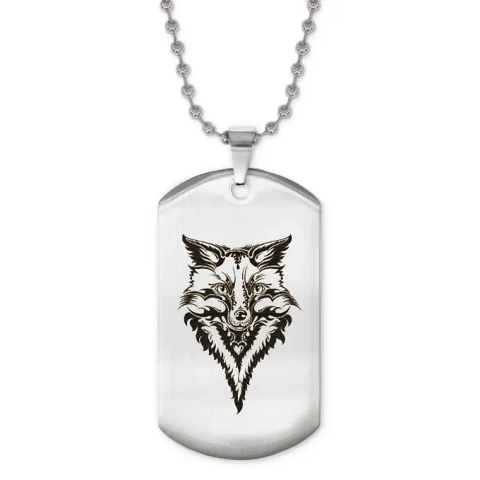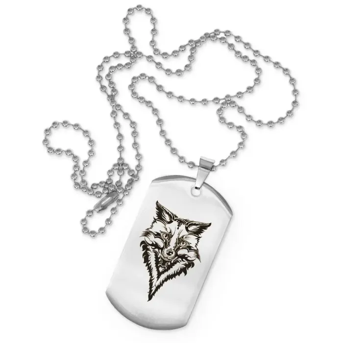 Жетон на цепочке с изображением лиса. Изготовлен из нержавеющей стали с зеркальной полировкой.