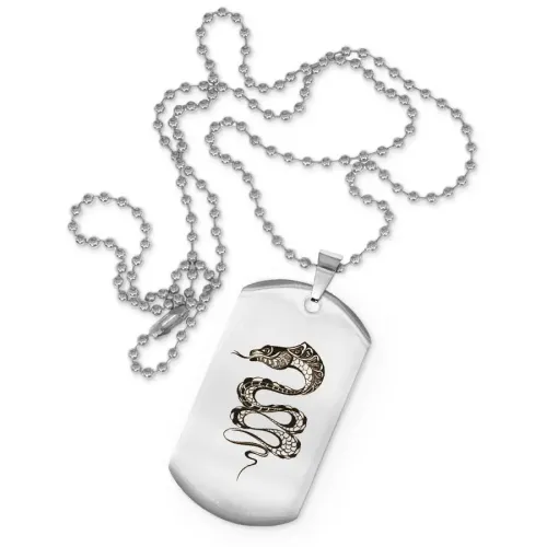Сувенирный жетон на цепочке с изображением змеи. Изготовлен из нержавеющей стали с зеркальной полировкой и лазерной гравировкой.