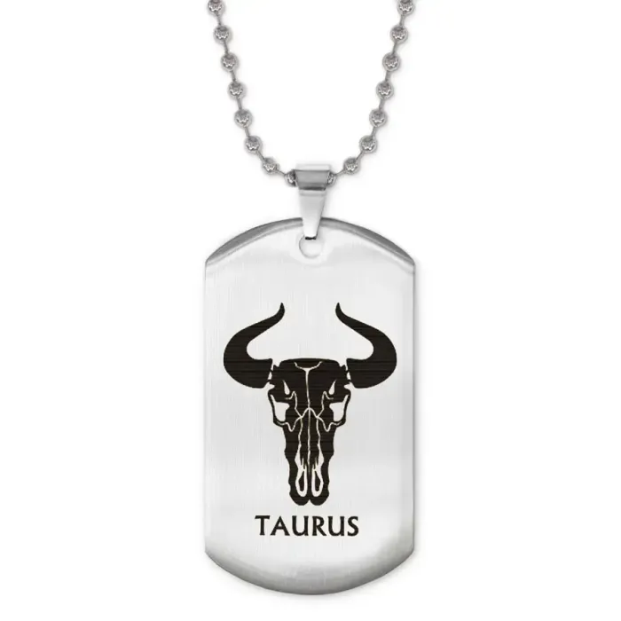 Сувенирный жетон на цепочке с изображением знака зодиака Телец. Изделие выполнено из нержавеющей стали.