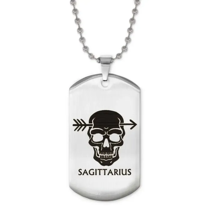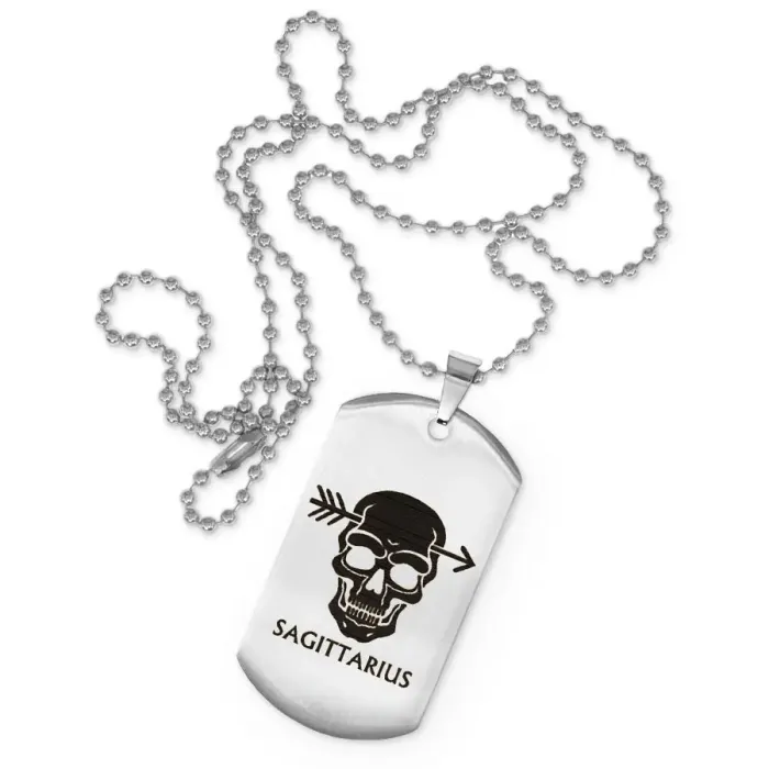 Сувенирный жетон на цепочке с изображением знака зодиака Стрелец. Изготовлен из нержавеющей стали с зеркальной полировкой.