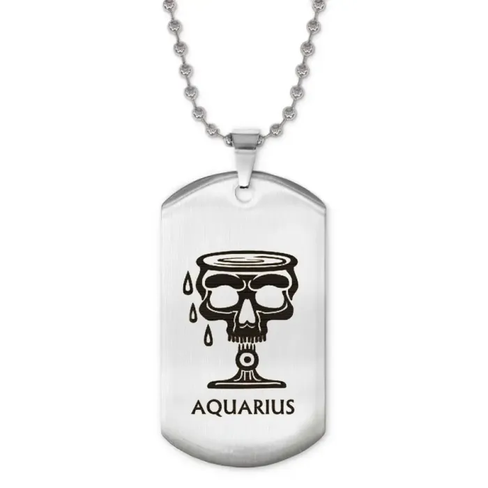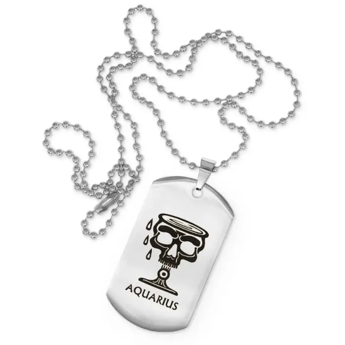 Сувенирный жетон на цепочке с изображением знака зодиака Водолей. Изготовлен из нержавеющей стали с зеркальной полировкой и лазерной гравировкой.