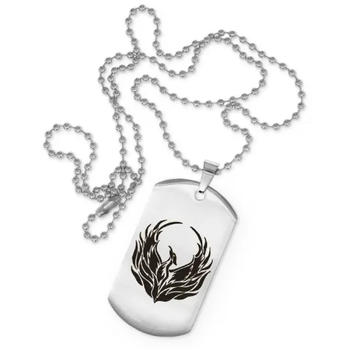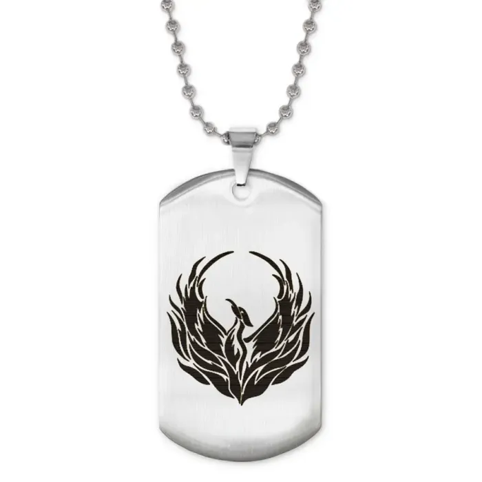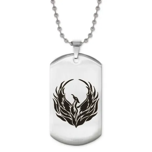 Жетон на цепочке с изображением феникса. Изготовлен из нержавеющей стали с зеркальной полировкой.