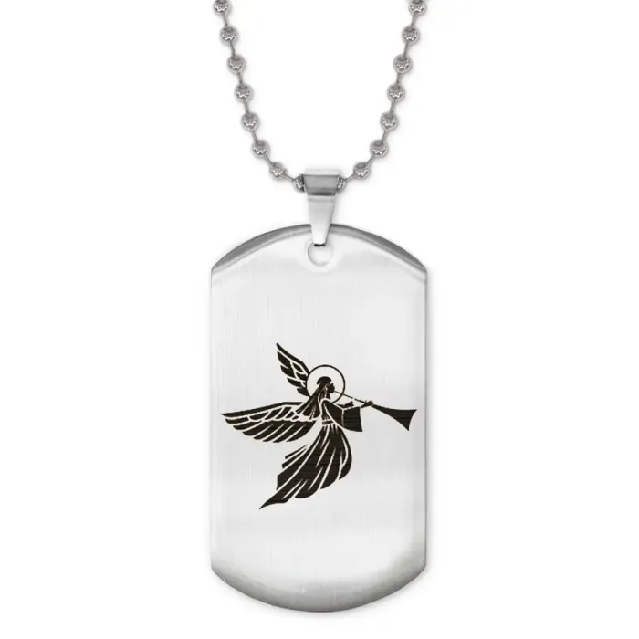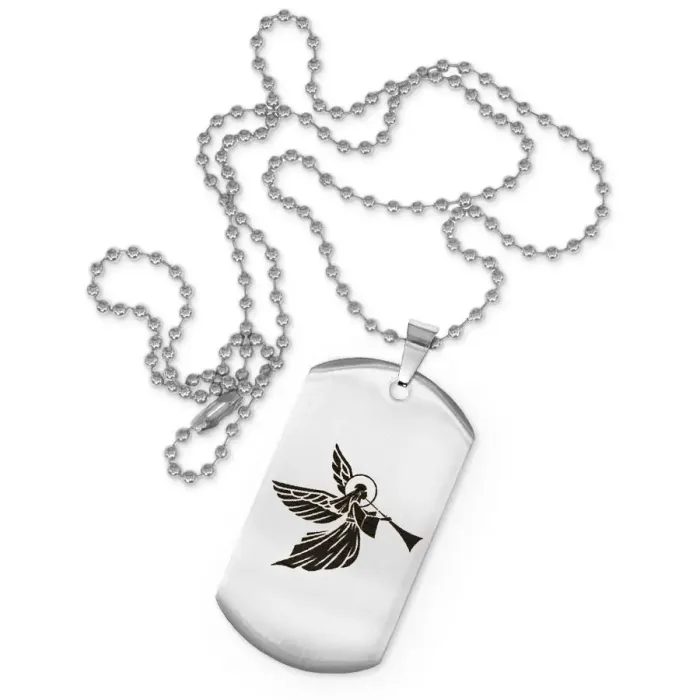 Сувенирный жетон на цепочке с изображением ангела. Изготовлен из нержавеющей стали с зеркальной полировкой.