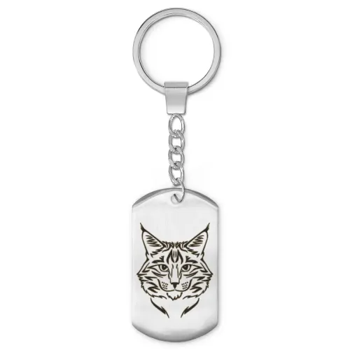 Брелок-жетон с изображением мейн-куна выполнен из нержавеющей стали с зеркальной полировкой.