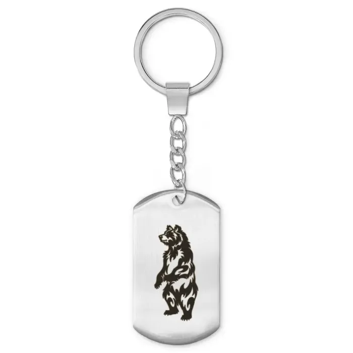 Брелок-жетон из нержавеющей стали с лазерной гравировкой изображения медведя.