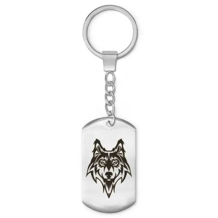 Брелок-жетон из нержавеющей стали с лазерной гравировкой изображения волка.