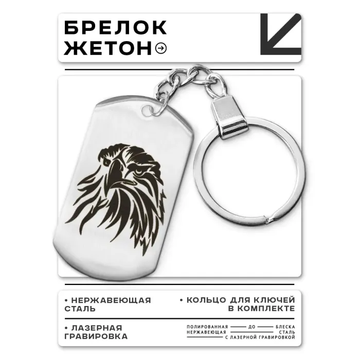 Брелок-жетон из нержавеющей стали с лазерной гравировкой изображения орла.