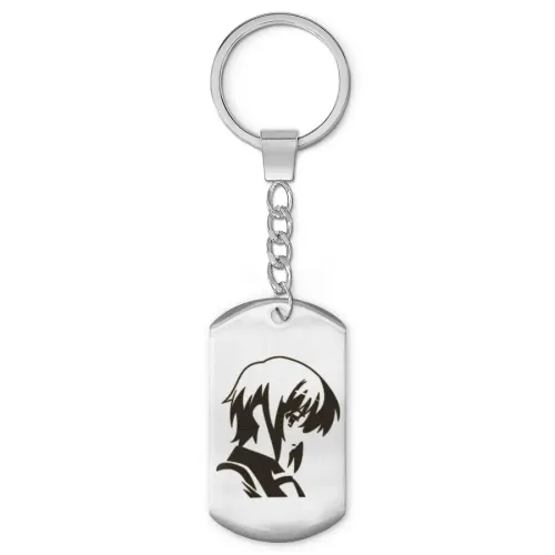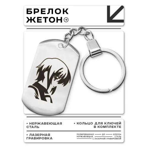 Брелок-жетон с изображением аниме-персонажа. Изготовлен из нержавеющей стали с зеркальной полировкой и лазерной гравировкой.