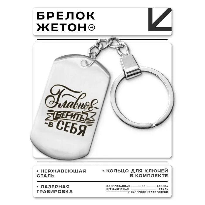 Брелок-жетон из нержавеющей стали с лазерной гравировкой.