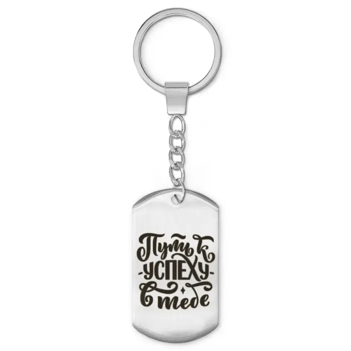 Брелок-жетон из нержавеющей стали с зеркальной полировкой и лазерной гравировкой.