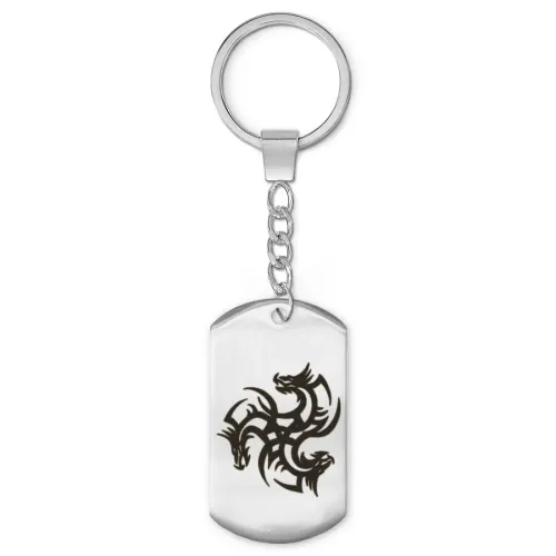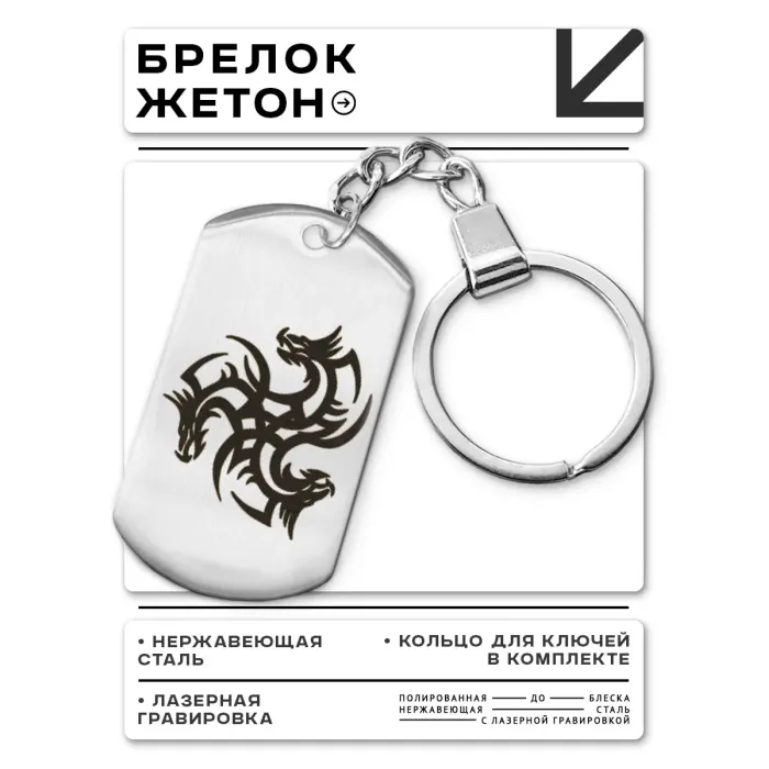 Брелок-жетон из нержавеющей стали с лазерной гравировкой изображения драконов.