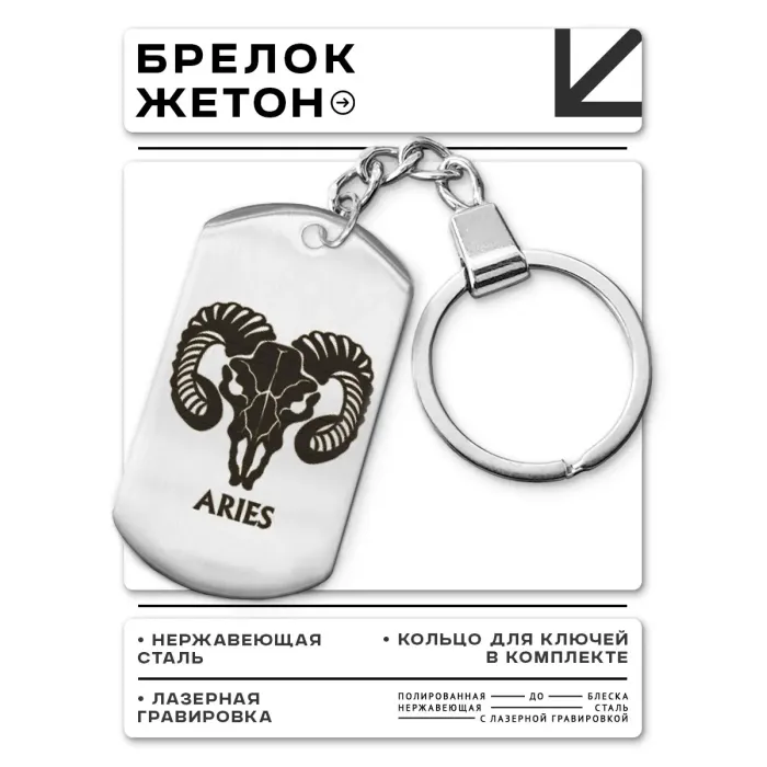 Брелок-жетон «Знаки Зодиака Овен» из нержавеющей стали с лазерной гравировкой.