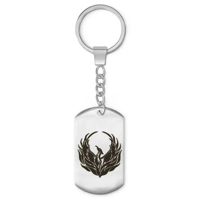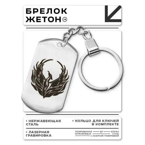 Брелок-жетон из полированной нержавеющей стали с лазерной гравировкой.