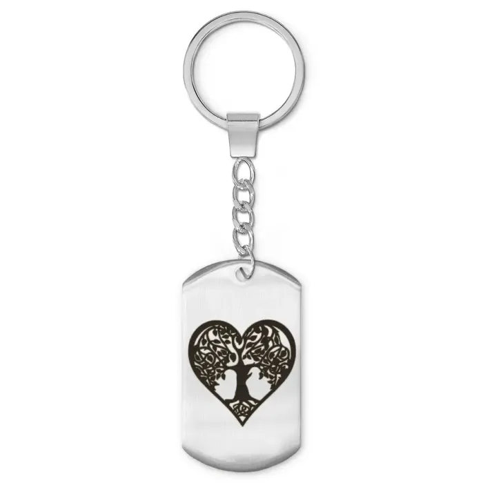 Брелок-жетон из полированной нержавеющей стали с лазерной гравировкой.