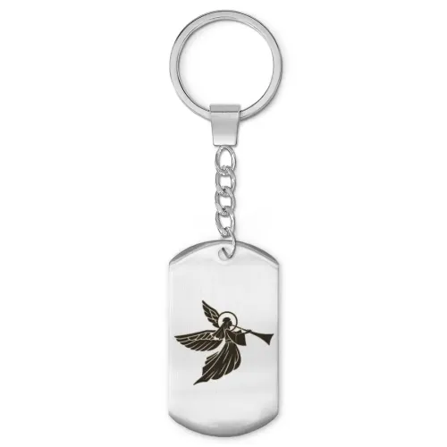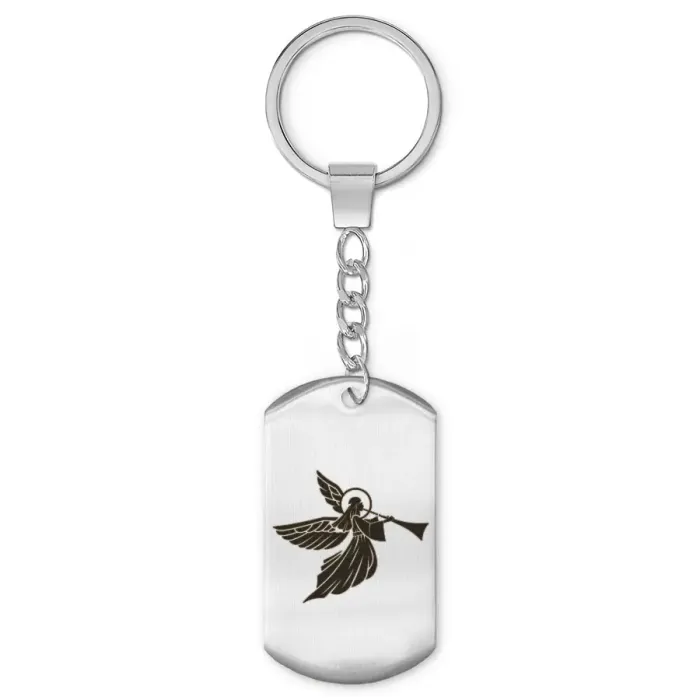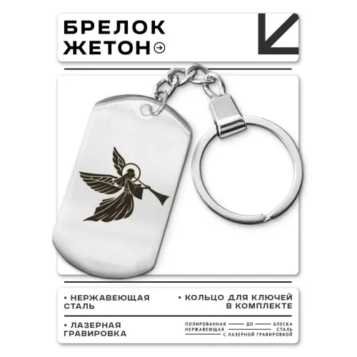 Брелок-жетон из нержавеющей стали с изображением ангела, нанесённым лазерной гравировкой.