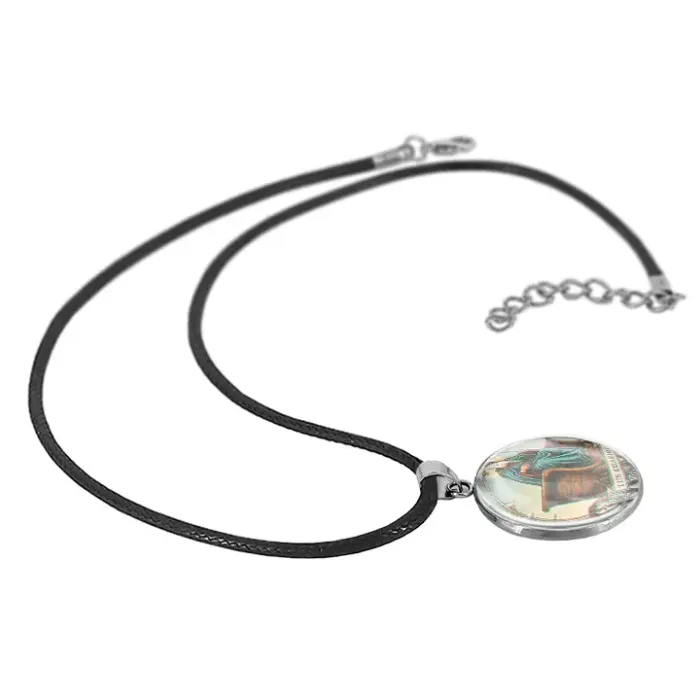 Кулон-амулет из нержавеющей стали с изображением под выпуклой стеклянной линзой.