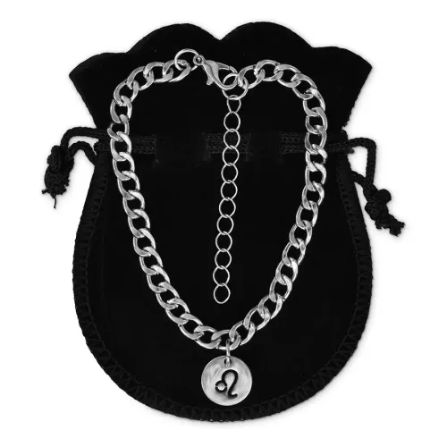 Браслет-цепь с подвеской в виде знака зодиака Лев, изготовленный из нержавеющей стали.
