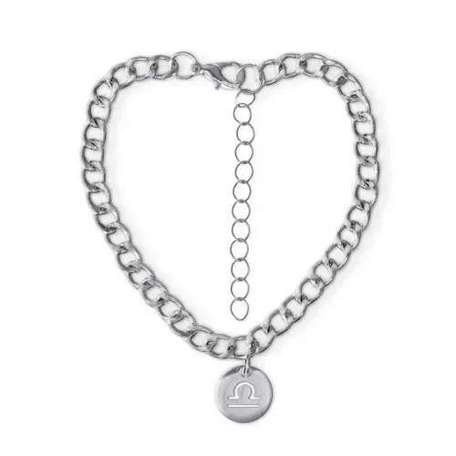 Браслет-цепь с подвеской в виде знака зодиака Весы, изготовленный из нержавеющей стали.