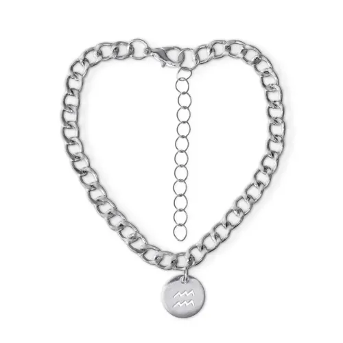 Браслет-цепь с подвеской в виде знака Зодиака Водолей, изготовленный из нержавеющей стали.