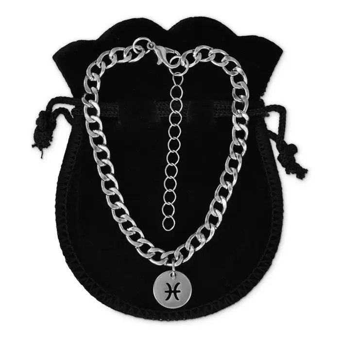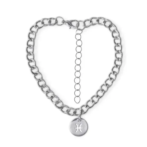 Браслет-цепь с подвеской в виде знака зодиака Рыбы, изготовленный из нержавеющей стали.