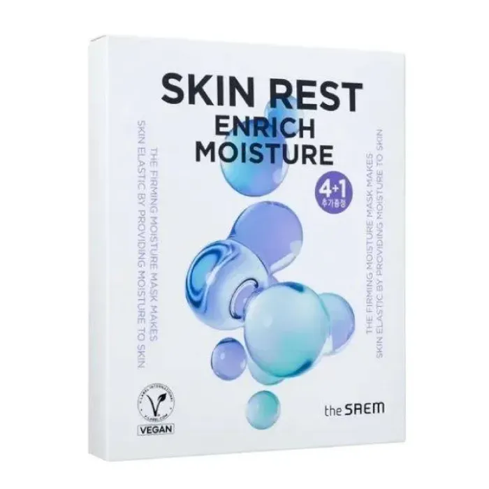 Набор масок на тканевой основе Skin Rest Enrich Moisture Mask Sheet (4+1 шт) предлагает интенсивное увлажнение и способствует повышению эластичности кожи. Маски плотно прилегают к коже, обеспечивая максимальный контакт с кремовой эссенцией, что позволяет активным ингредиентам глубоко проникать в кожу. В состав входят бакучиол, д-пантенол и аденозин, которые активно увлажняют и улучшают текстуру кожи.