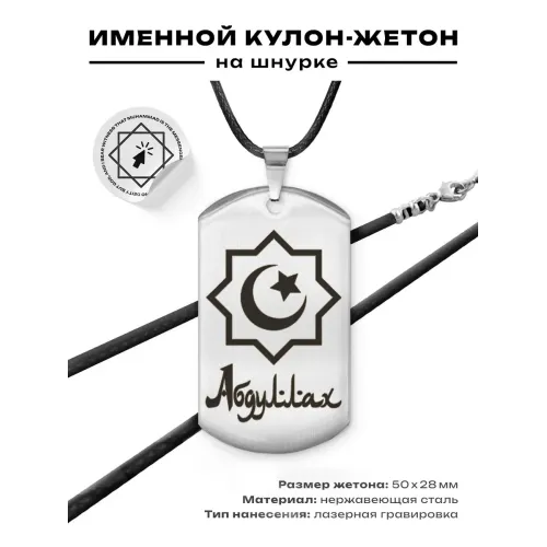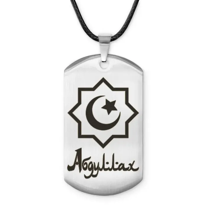 Мусульманский именной жетон Абдуллах — амулет из полированной нержавеющей стали с лазерной гравировкой.