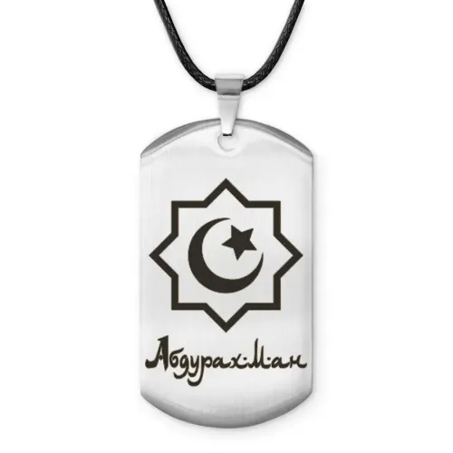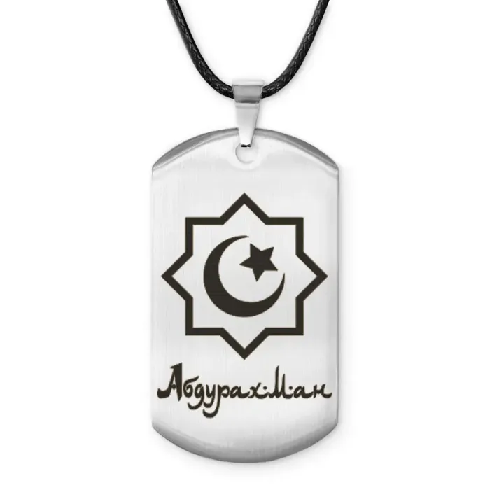 Мусульманский именной жетон Абдурахман — амулет из нержавеющей стали с лазерной гравировкой.