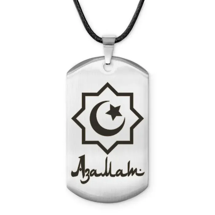 Мусульманский именной жетон Азамат ACZ-540 — сувенирный амулет из нержавеющей стали с лазерной гравировкой.
