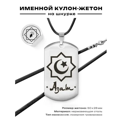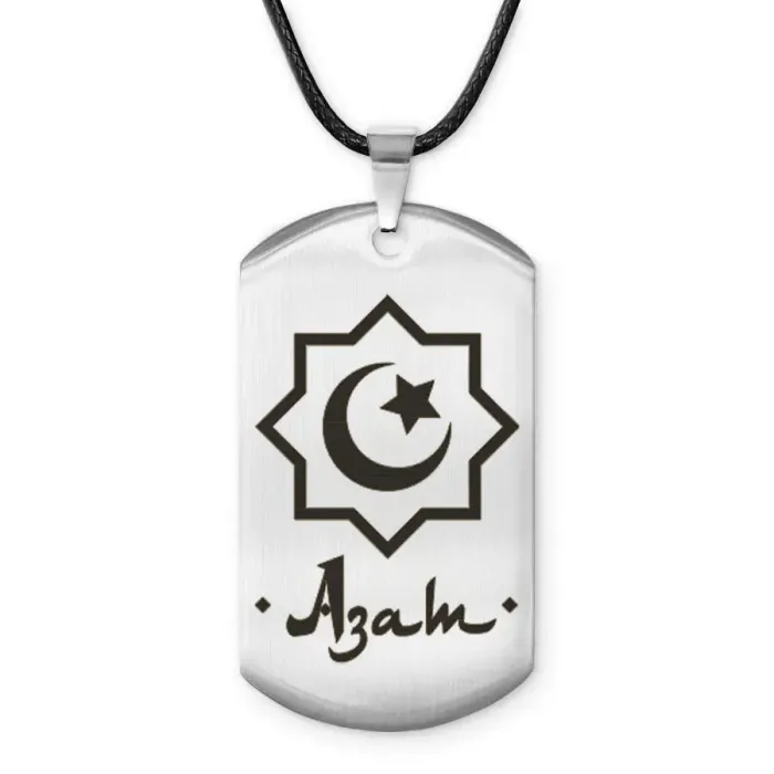 Мусульманский именной жетон из нержавеющей стали с лазерной гравировкой.