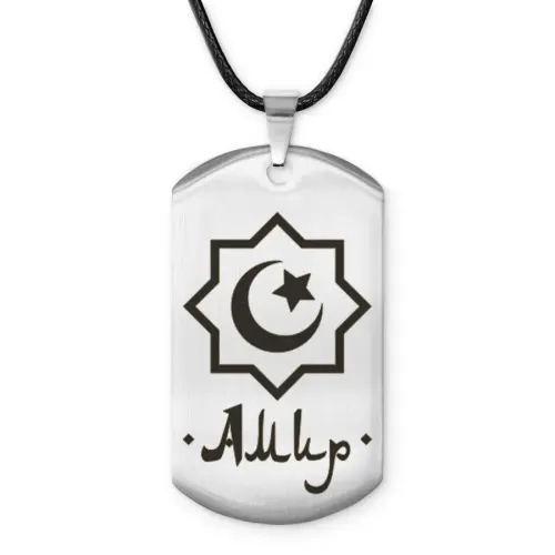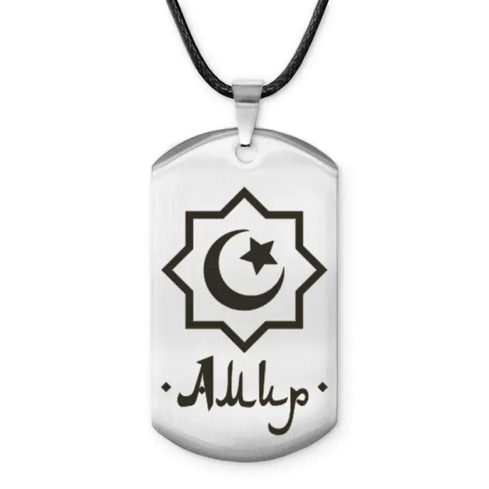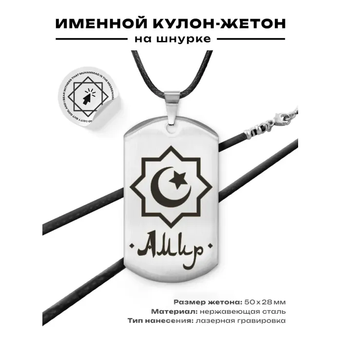 Мусульманский именной жетон Амир — амулет из полированной нержавеющей стали с лазерной гравировкой.