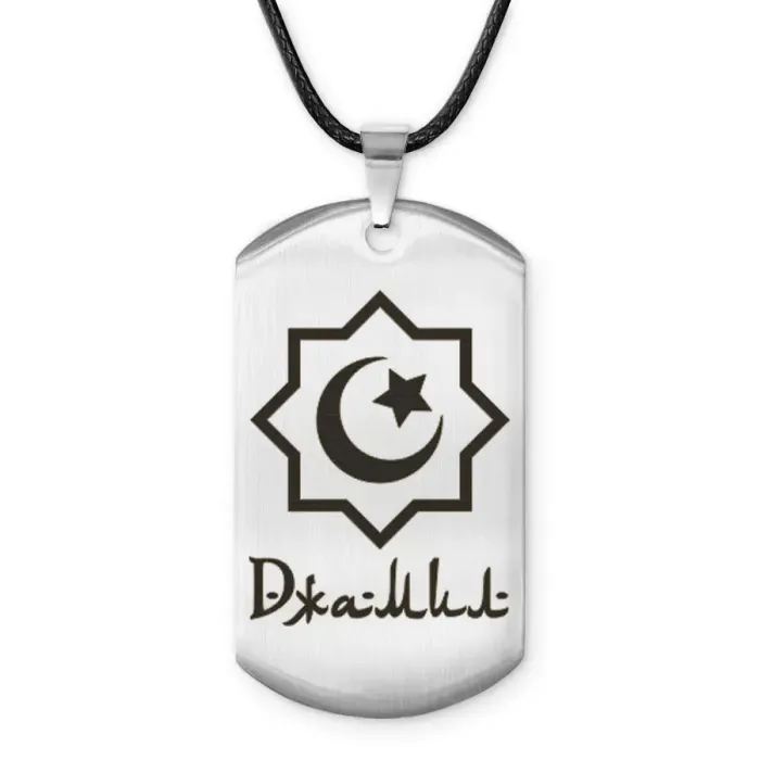 Мусульманский именной жетон Джамил — амулет из полированной нержавеющей стали с лазерной гравировкой.